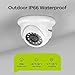 【IR Day & Night Vision】Featuring 4mm LEDs with IR-CUT function, 60° viewing angle, 60ft night vision range. The camera's infrared mode is automatically activated in low lighting conditions. Note: The dome camera only rated for indoor use.