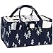 Navy and green pine tree felt storage caddy features a removable divider and is designed to keep diapers, wipes, and changing items organized; Storage caddy measures 11.5 in x 6 in x 8 in