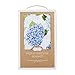 Square muslin swaddle blanket features all over blue hydrangea print.