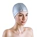 ALSO FITS MEN AND Kids:Thicker than latex, this silicone swim cap is flexible to fit any sized head,Featuring great elasticity, this swim cap can be stretched easily for optimum fit. Since it is lightweight, you barely feel you are wearing it while swimming.