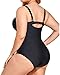 Black 1 Piece Swimsuits For Women: Adjustable and removable shoulder straps as well as padded push up bras for no see through and good shape. One piece bathing suits with sleeves offer moderate coverage, and have great tummy control.