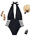 One piece swimsuit tummy control: Solid black High neck swimsuits with halter top and padded push up bra, which can provide support and shape. The style amps up the swimwear, making it more flirty, stylish and awesome.