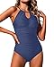 One piece swimsuits for women: Navy Blue high neck swimsuits for women with vintage halter tops offer great support and good shape. The front keyhole cutout design adds a little sexy appeal while still full coverage. This cute bathing suits with adjustable straps provide custom fit.
