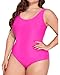 Plus Size One Piece Swimwear:This Hot pink competitive swimming suit features a cute U-neck and crisscross back design. The ruched tummy control function can be slimming and more flattering.
