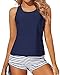 Yonique Tankini Swimsuits For Women Athletic Swim Tank Top With Boy Shorts Two Piece Tummy Control Bathing Suits Black&Stripe L