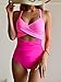 Beachsissi High Waisted Bikini Twist Front Tie Back 2 Piece Swimsuit Solid Color
