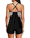 2 Piece Tankini Bathing Suits for Women: This set includes a blouson tankini top and a bikini bottom, both featuring a black stripe print. The top is wireless and has a removable built-in bra, ensuring a soft and comfortable fit.