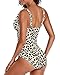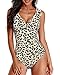 Design: Leopard printed one piece swimsuit with v neck, ruched tummy control, criss cross back, cutout, adjustable shoulder straps.