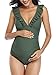 Ruffle swimsuits for women: Swimsuit with sleeves has a removable soft push-up padded bra to provide you with good support. The retro ruffled swimsuit has criss-cross lace-up details, which adds a sense of cuteness.
