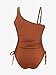 Features: One shoulder, ruched, side drawstring, tummy control, high cut, adjustable shoulder strap, removable soft padding & detachable shoulder strap.