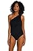 Taking the classic black one piece bathing suit to new heights, the ruffled one shoulder swimsuit features a modern asymmetric neckline topped off with a playful ruffle.