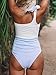 【 Design 】➟ Asymmetric Ruffle Monokinis Bathing Suits,vintage sailor style solid color base with white edge, brightening, eye-catching, white edge improves waist line, makes legs looks long