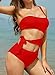 Cut out one piece: Deep cutout opening at right side of waist shows your body curvy and makes you look slimming and attractive. This one-piece swim suit is high waisted. The strapless bathing suit has moderate back coverage.