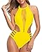 The neon yellow color and backless design of the swimwear make you look sultry, slimming, and glamorous, elegantly highlighting your charming curves.