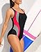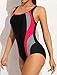 Design: Womens sports one piece swimsuit takes a fashionable color patchwork design. Wide shoulder straps and racerback, wrap slim, highlight curves, make you look more charming