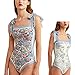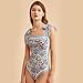 【PREMIUM FABRIC】 85% Polyester, 15% Spandex.Square neck reversible floral swimsuits one piece bathing suits for women.