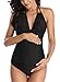 【DETACHABLE BUTTONS】This pregnancy bathing suit features a one-piece, detachable buttons on the neck, and removable padding bras. It also can be used as a breastfeeding swimsuit, nursing friendly. Ruched sides for a perfect fit during pregnancy and flatter your growing baby belly.