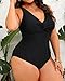 Plus size one piece swimsuit: The twist front and v neck swimwear shows your neck curve perfectly, the sexy one piece bathing suits give you a fashion look.