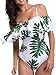 V neck one piece swimsuit with ruffle at front and back, sexy and fashionable, green leaves pattern , wearing this swimsuit with full of confidence.