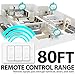 [PROGRAMMABLE RF REMOTE CONTROL] The remote control is able to pair with the outlet plug in any combination you need. You can set up one button to control one or multiple outlets. Two remotes allow you to control one outlet from different rooms, or keep one as a backup. The RF remote woks through walls or furniture without line-of-sight, and is capable of 80ft remote range in an open area.