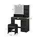 Surprise Your Love: With clean lines, a timeless black table surface, and a large mirror with light bulbs, this makeup table is an ideal gift for your sweetheart, who will certainly not hesitate to fill up their new dressing table