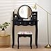 SIMPLE & CLASSIC DESIGN: The round makeup mirror and square tabletop give it a sophisticated style, and the classic black color can match with any decoration style. You can also add your own knobs for a little extra spice. Perfect for home, work and studio makeup, it is a birthday gift for women and girls, daughters and wives.