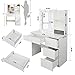 【LOTS OF STORAGE SPACE & DETACHABLE TOP FOR WRITING TABLE】7 multiple drawers, big desktop, 3 DIY dividers and removable organizer, this dressing table set offer you with enough space to store your makeup, everyday jewelry, perfume collection, lotions, brushes, hair accessories and other beauty supplies; with the removal of mirror top part, the makeup table could be used as a desk for a laptop or a study/writing table.