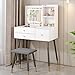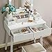 Vanity Set with Larger Mirror & 12 Lights:A clear white vanity makeup desk enhances the beauty of the room. Start your nice day with this impressive vanity mirror table set. 12 beautiful and energy-saving LED light bulbs to provide a soft and not dazzling light source. When lights are on at night, it can also be used as a table lamp and come with 3 different settings: warm yellow, warm white, and cold white light colors.