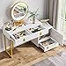 [Ample Storage]: Hide your cosmetics, earrings, jewellery and more in the 2 spacious drawers neatly, as to the spacious desktop, books, perfume bottles, and powder box, put all your makeup items on this white and gold desk set
