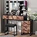 【Perfect Size for Bedroom & Nice Gift】makeup table size: 15.8"(D)x37"(W)x55"(H), Stool size: 11.5"(D)x15.8"x(W)x17"(H). Vanity Mirror: 20"(H) x23.6"(W).Has it tried and give a surprise to your girl, wife, or mom on a special day?