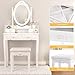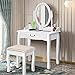 【Elegant and Gorgeous Vanity Table Set】Vanity Table Set with oval shaped mirror that rotates 360 degrees and 1 drawers makeup desk- sleek and simply, provide you enough spaces to store your jewelry, perfume, and cosmetics. White dressing table add a Simple & luxurious look to your room.
