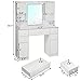 【Vanity Table with Charging Station】This makeup table comes with a built-in power strip on the right table top, including 2 standard plug sockets and 2 USB ports, so you don't have to look around for a power outlet when styling your hair or getting your nails done. It also provides great convenience for charging mobile phone, tablet, headphones or other mobile devices.