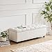 Enough Storage Space: The Tbfit storage ottoman measures 50.20 "L*17.32 "W*17.52 "H. Use the large storage ottoman to store extra throw blankets, pillows, toys, magazines, or other items, keeping them within reach but neatly out of sight. You will love how much your space can transform with the simple addition of this charming ottomans.
