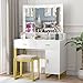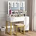 【Superior Quality Material & Cushioned Stool】Made of high quality MDF board and heavy-duty metal frame, our vanity table and stool is ideal for long term use. Contained with a cushioned stool helps you enjoy the time when you sit in front of the makeup vanity desk.