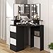 【L-Shaped Corner Design】Different from the rectangular bedroom dresser,our makeup table fits nicely in a corner and maximizes the space utilization in your room.Comfortably fitting in bedroom or changing room, the corner small vanity maximizes space in compact rooms.