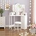 【Durable Material & Multi-functional】The makeup desk top is made from 15mm high quality MDF, which is smooth and flat. 12mm thickness mirror frame, and extra soft cushioned stool, perfect for home, work,hair salon and studio makeup. When the vanity top been removed, it could also be used as a writing desk.