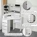 TWO MULTI-FUNCTIONAL DRAWERS: The white vanity table has 2 storage drawers for daily storage(Drawer size: 15*14.3 inch), the drawers open and close easily. Large drawers that can fit wireless keyboard and also fit two of college books side by side and so on.Keeps makeup area clean and tidy with its two drawers.
