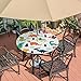BEAUTY AND FIT:The outdoor round tablecloth features beautiful printed patterns that not only give your table a fresh and stylish look but also effortlessly protect it from scratches. The elastic edges ensure a snug fit, keeping the tablecloth securely in place without any sagging or shifting. Say goodbye to the hassle of tugging, tripping, or having your tablecloth blown away. You can also have peace of mind knowing that your children won't accidentally pull off the tablecloth.