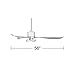 56" blade span. Variable blade pitch. 153 x 22 mm motor size. Canopy is 5 1/4" wide x 2 1/4" high. Maximum ceiling slope of 20-degrees with included canopy.