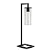 SLEEK CRAFTSMANSHIP: Lamp base is made of glass and metal, topped with a fabric modified drum shade. For best care, clean with a soft, dry cloth
