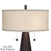 BEAUTIFUL CRAFTSMANSHIP: Made of antiqued bronze tone metal with a fabric modified drum shade and 3-way switch