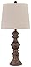 STYLISHLY CRAFTED: Made of brown faux wood. Designed with a modified drum shade; for best care, clean with a soft, dry cloth