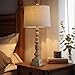 Coastal vintage style table lamp: inspired by coastal vintage style, each table lamp features a blue washed finish for a more elaborate design. White tapered drum shades on top are the perfect finishing touch to these beautifully old-fashioned bedside lamps. Great for the entryway, living room, bedroom, or office area.