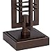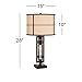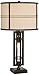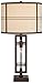 Oil-rubbed bronze finish. Metal construction. Off-white oatmeal fabric drum shade.