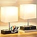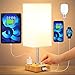 Stunning USB Table Bedside Lamps with Phone Slots and Wooden Lamp Base - With the minimalist but practical phone stands design, the nightstand lamps pack of 2 can place your smart phone, iPad or kindle reader in the phone slots while charging, which leave more room of table for you.
