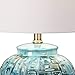 Handmade textured ceramic jar lamp by Possini Euro Design. Hand-applied teal glaze finish. Because the base is handmade, there may be slight variations in pattern, texture, and color.