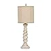 PLASTIC lamp base in modern twisted design and matte black finish with white linen lamp shade. Assembled dimensions: H23.5"×W11".