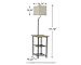 TRAY WITH DUAL RACKS: Lamp is crafted with a built-in wood tabletop and metal dual racks. Topped with a rectangle hardback shade