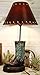 This western decoration is always a sensation for the cowboy or lover of horses and the wild west. This decorative desktop or table lamp adds a well lit frontier touch to any room decorated with Western, Southwest Cowboy/Cowgirl themed home accents. Complete an ornately detailed turquoise boot sculptural base, the lamp comes with a leather-like shade with laced borders.