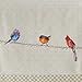 This table runner features a lovely floral print with small finches sitting on the flowers and ivory background.